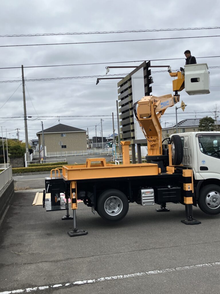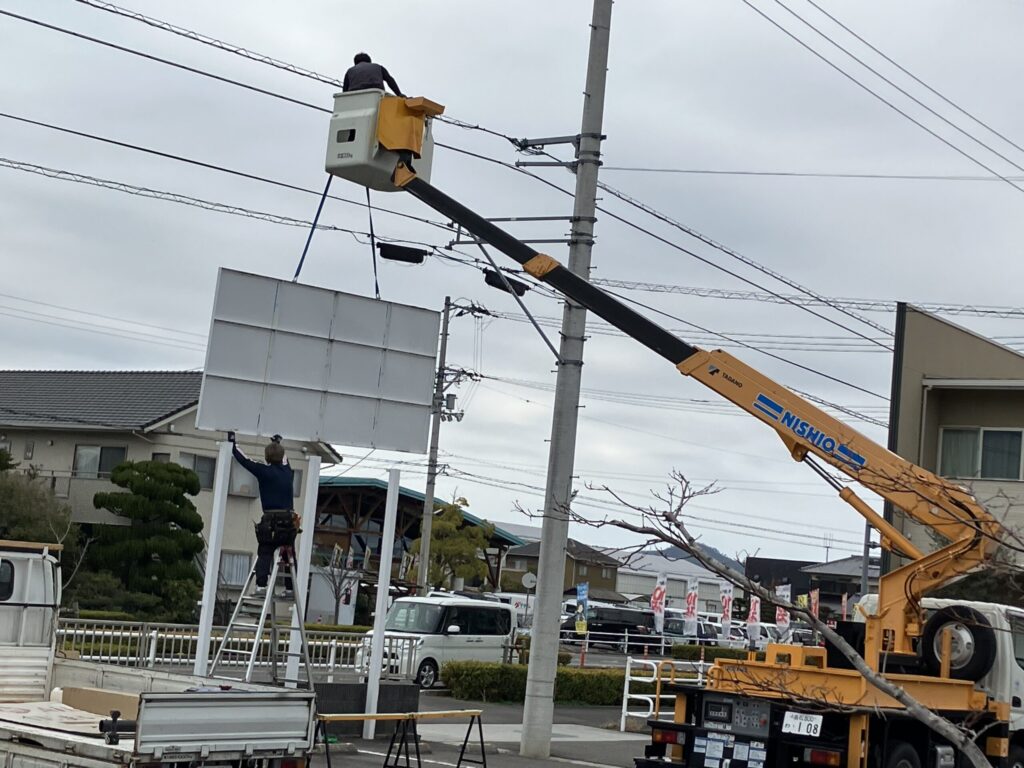 エフワン建設さんの敷地ところでは流れる看板設置中です↓