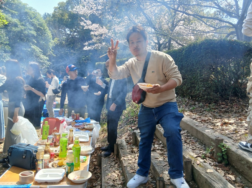 今年のお花見🌸もあの伝説の男(YONEX MAN) ㊟昨年のお花見ブログを参照ください)が登場するのか、事務所では密かに期待されていたのですが、どうやら負傷中らしく😭現れず、若者たちがバドミントンを楽しむ光景がありました。