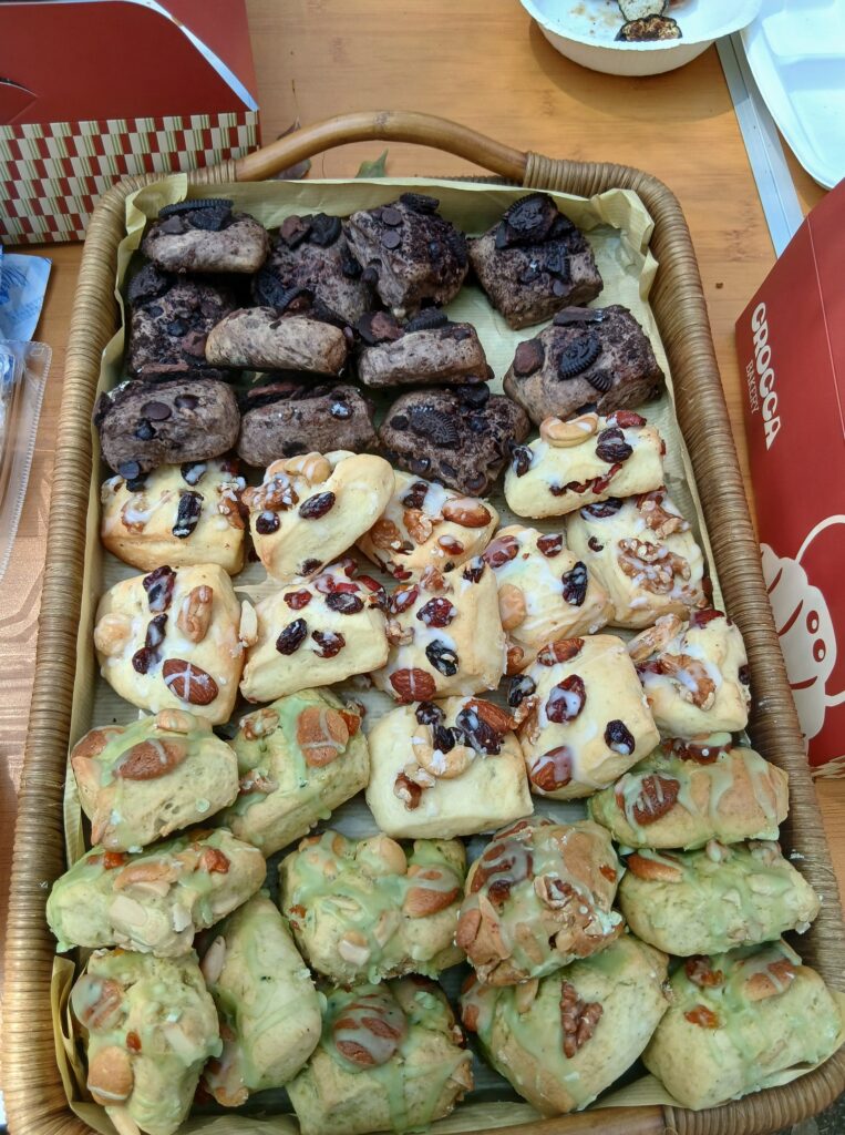 差し入れのフルーツやクロワッサン、スコーン(なんと手作り😮)などもいただき、豪華なお花見になりました(だれも桜🌸を見ていない…( ̄▽ ̄;))
