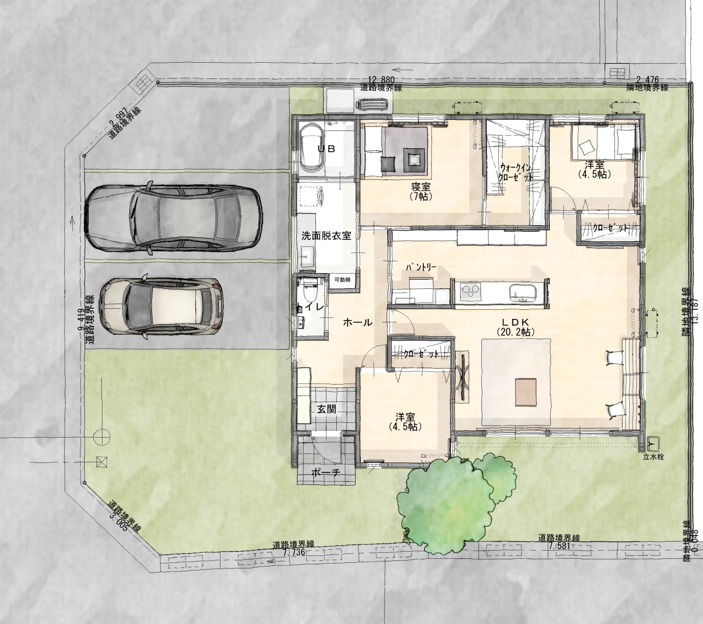 仕様 | ・太陽光(6.825Kw) ・エコキュート ・外壁光セラ(スーパーKMEWシール) ・長期優良住宅 ・省令準耐火構造 ・カーテン ・照明器具 ・システムキッチン ・キッチン背面収納 ・システムバス ・洗面化粧台 ・トイレ ・外構 ・オール電化 |